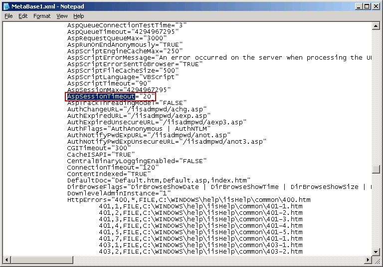 4) In the opened Notepad, search "AspSessionTimeout" field, modify the value (the default value is "20") (Figure 1-2).